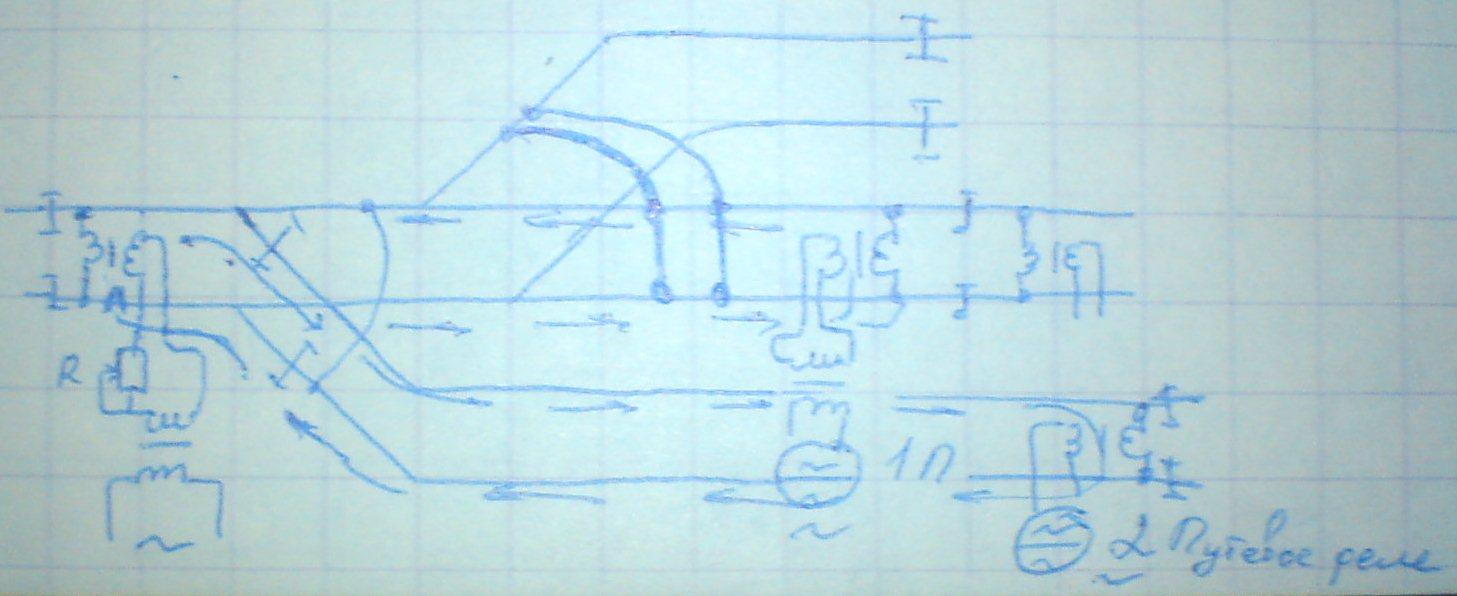 Если изолированный участок свободен и исправен - ток рельсовой цепи протекает по рельсам, поступает в первое и во второе путевые реле, путевые реле срабатывают и своими контактами включают общее стрелочное путевое реле.
