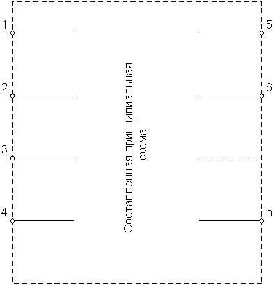 Границы составленной схемы выполняются пунктирной линией. Все входы и выходы схемы изображаются в виде клемм и нумеруются по порядку (рисунок