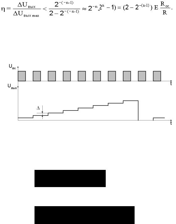 . Таким образом, напряжение на выходе ЦАП будет иметь ступенчатую форму, как показано на рисунке 3.2. После поступления (2n – 1) импульсов все разряды счетчика будут содержать "1", на выходе ЦАП образуется максимальное напряжение