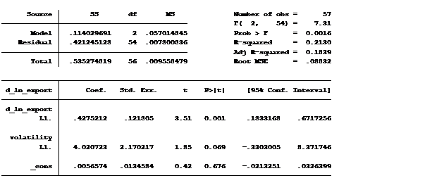 that the export does not cause changes in exchange rate volatility.
