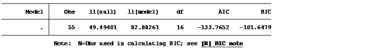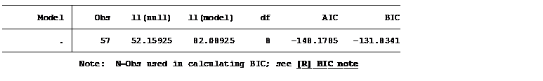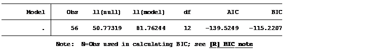 Information criteria for the model,
