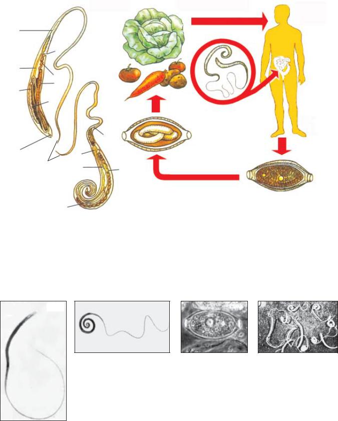 Рис. 29.1. Морфология и цикл развития аскариды человеческой (Ascaris lumbricoides):