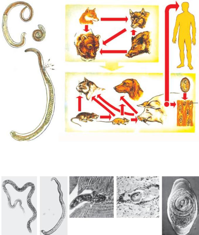 Рис. 34.1. Строение и жизненный цикл трихинеллы(Trichinella spiralis):