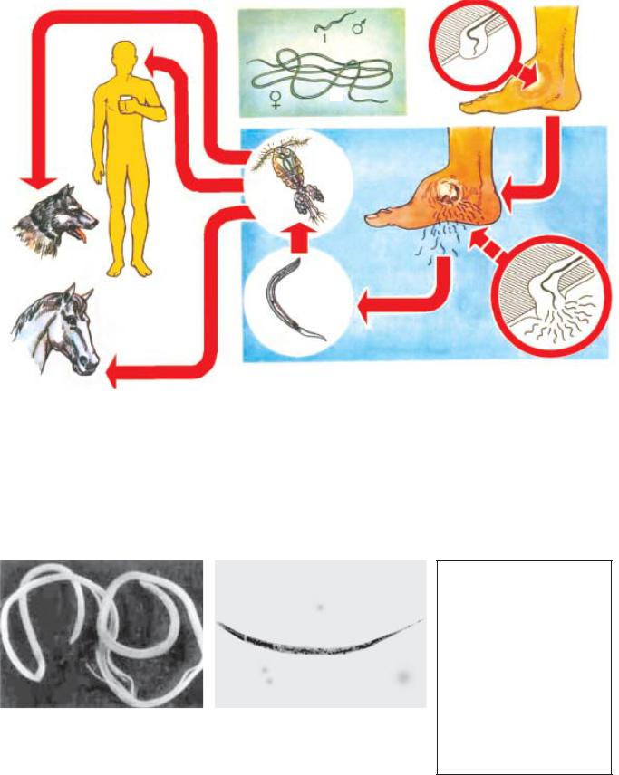 Рис. 35.1. Жизненный цикл ришты (Dracunculus medinensis):