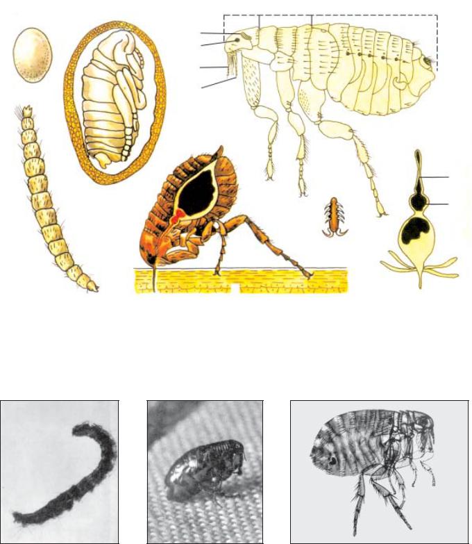 Рис. 44.1. Строение и цикл развития блохи человеческой (Pulex irritans):