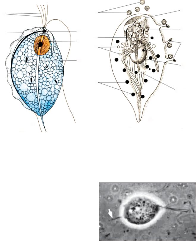 Рис. 6.2. Трофозоит Trichomonas vaginalis (стрелочкой отмечены аксостиль и жгутик, фазово-контрастная микроскопия)