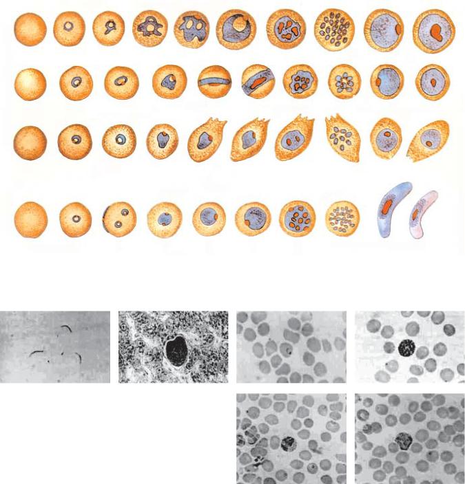 Рис. 9.1. Виды малярийных плазмодиев: