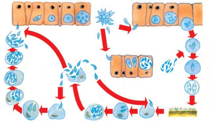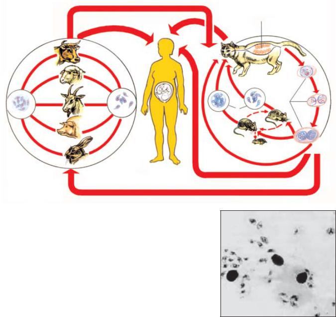 Рис. 11.8. Жизненный цикл Toxoplasma gondii: