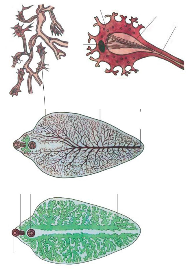 Пищеварительная система состоит из передней и средней кишок, дифференцированных на мускулистую глотку, короткий пищевод и кишечник. Кишечник имеет два парных ствола, ветвистых либо простых, заканчивается слепо (рис. 13.2, а). Кровеносная и дыхательная системы отсутствуют.