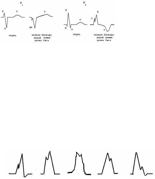 Рис. 2.18. Возможные формы желудочкового комплекса в левых грудных отведениях при полной блокаде левой ножки пучка Гиса в отведении V6