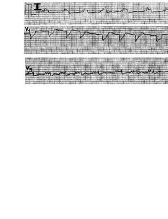 2)в отведении V1 желудочковый комплекс вида QS часто с зазубриной на нисходящей его части или rS;