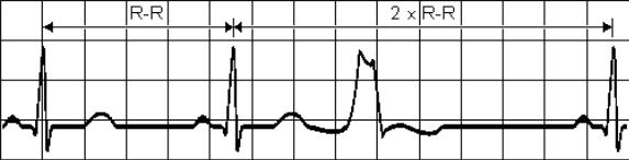 Рис. 3.14. Измерение интервала сцепления желудочковой экстрасистолы и полная компенсаторная пауза