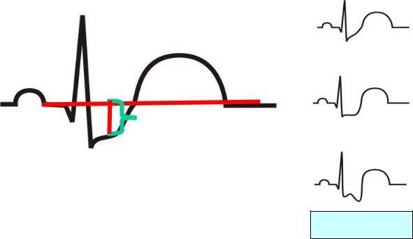 Рис. 5.6. Возможные морфологические формы изменений сегмента ST при развитии ишемии: