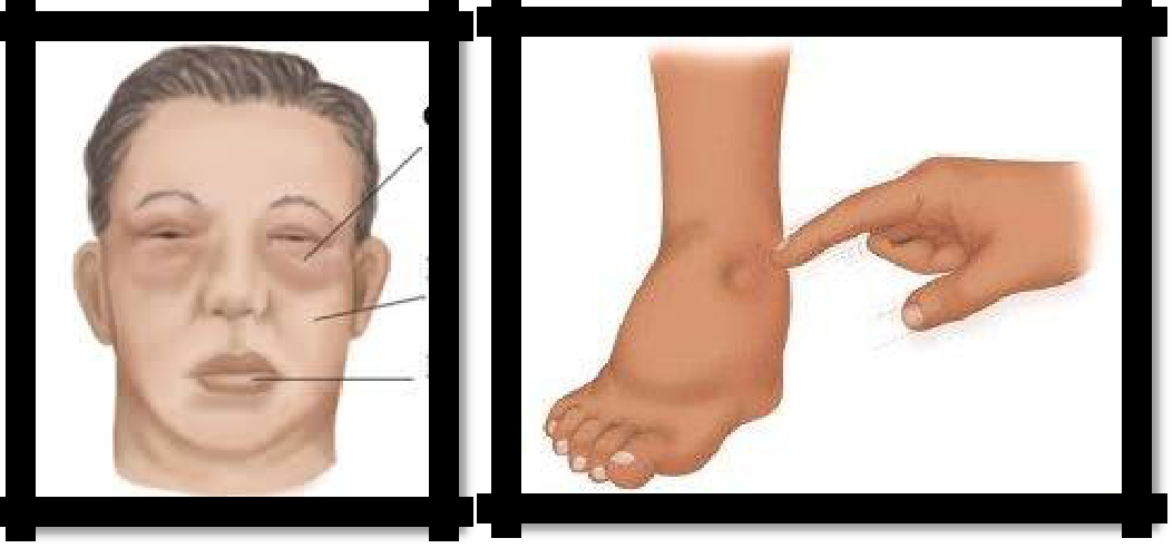 Examination: pale edematous face, swelling on the legs.