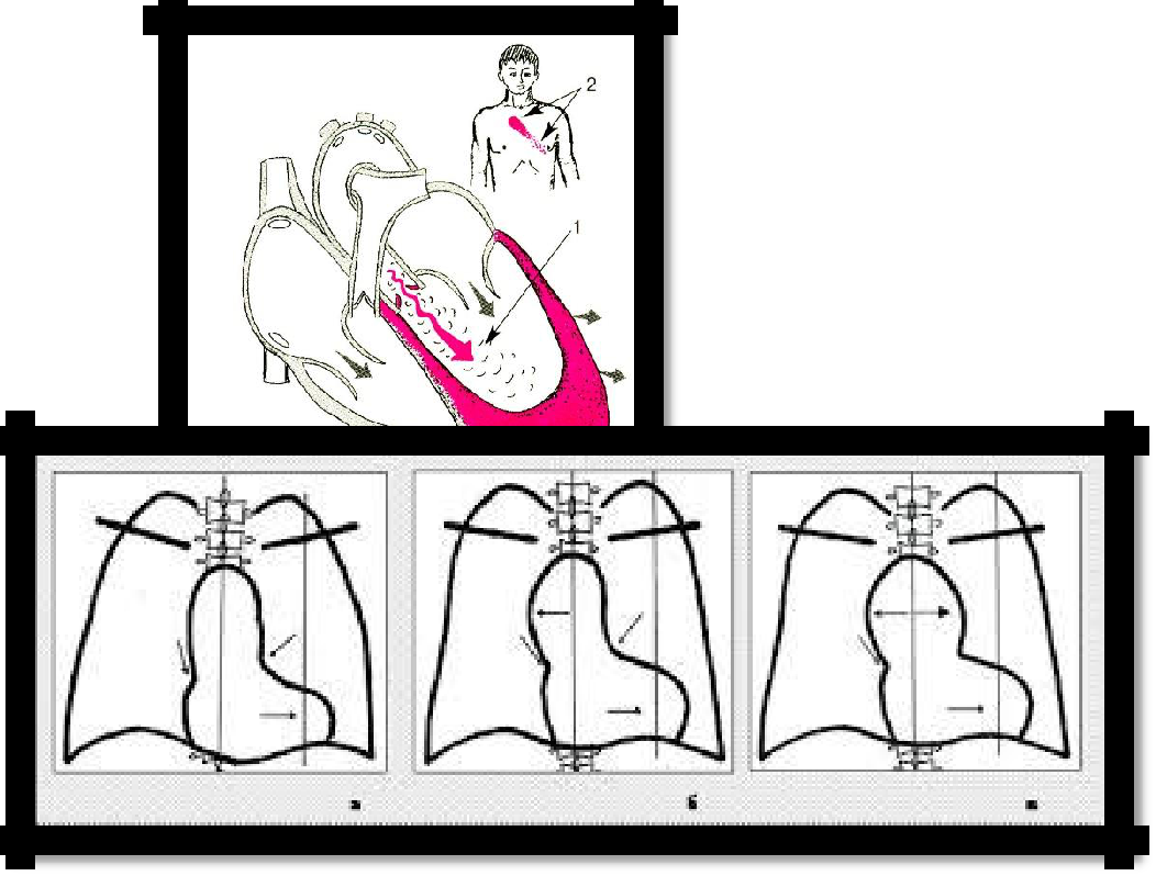 dilatation of the left ventricle and expansion of the mitral orifice), it is possible to expand the borders of the heart to the right, due to hypertrophy of the right ventricle of the heart.