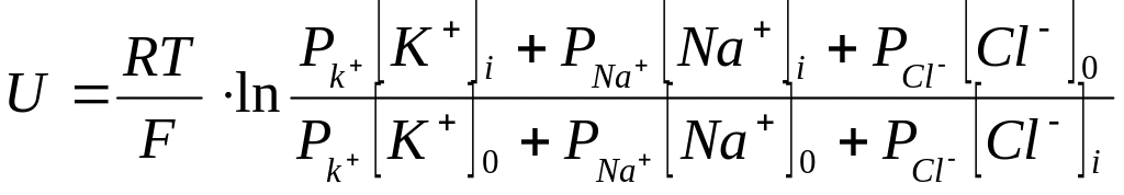 вариант уравнения Гольдмана-Ходжкина-Каца:*