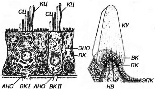 (самые длинные прилежат к ресничке). Клетки разделяются на два типа (рис.
