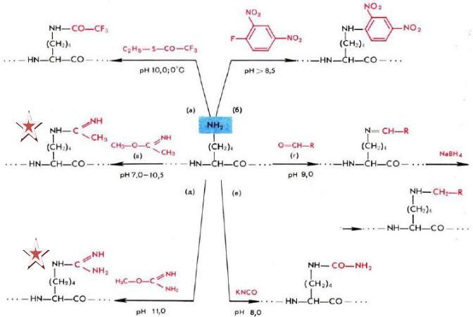 Эти же реакции применимы и для модификации α-аминогруппы в белках.