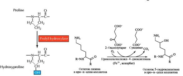 Гидроксилирование. Ярким примером является гидроксилирование Pro и Lys при образовании коллагена.