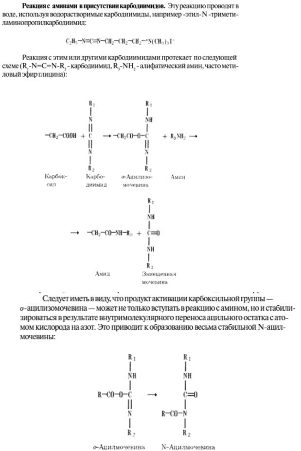 ω-Карбоксильные группы аспарагиновой и глутаминовой кислот, как правило, весьма многочисленны и в большинстве своем размещены поверхностном слое белка. Наиболее часто применяют следующие методы модификации этих групп