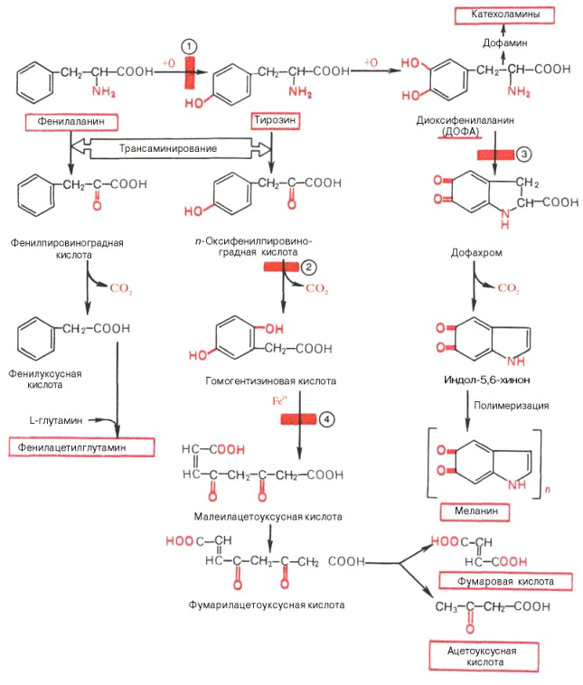 Основные метаболические превращения фенилаланина и тирозина