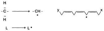 Инициирует реакцию чаще всего гидроксильный радикал, отнимающий водород от СН2-групп полиеновой кислоты, что приводит к образованию липидного радикала.
