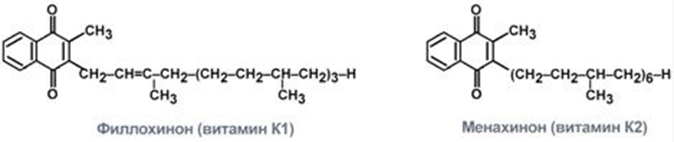Витамеры: К1 – филлохинон и К2 – менахинон.