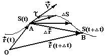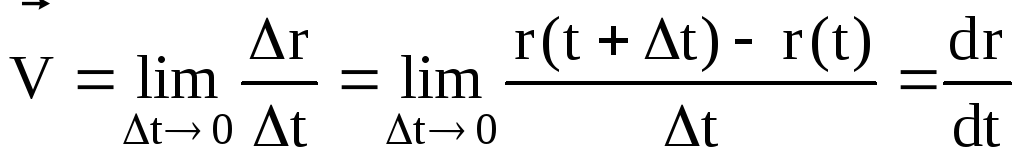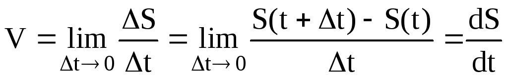 За означенням, модуль миттєвої (в даний момент часу) швидкості є границя відношення шляху ∆S до проміжку часу ∆t, за який цей шлях пройдено, при умові, що проміжок часу зменшується до нуля, тобто першій похідній за часом від криволінійної координати