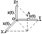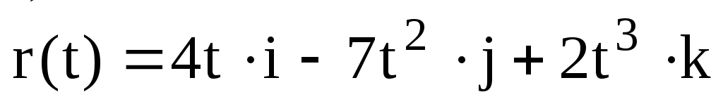 x(t) = 4t (м); y(t) = -7t2 (м); z(t) = 2t3 (м).