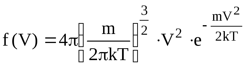 Максвеллівська функція розподілу молекул по швидкостям має вид (її вивід див.у кн. Р.В.Телеснин. Молекулярная физика)