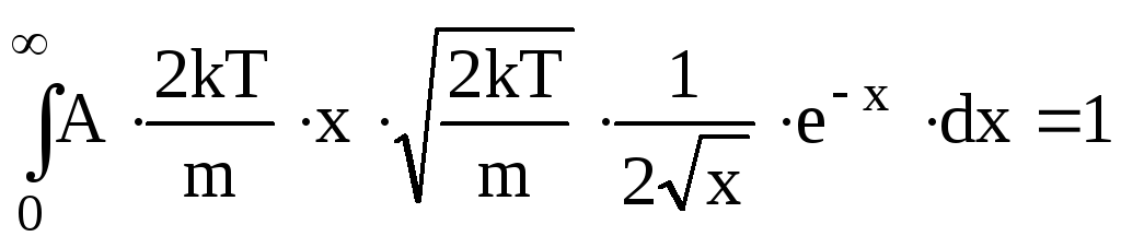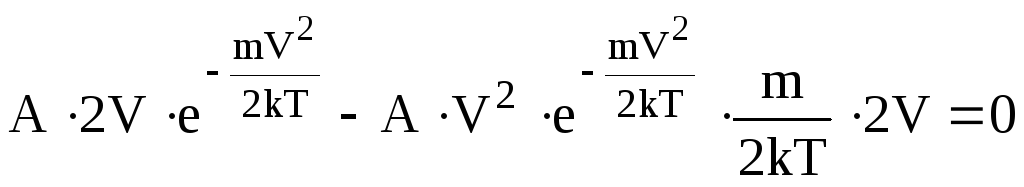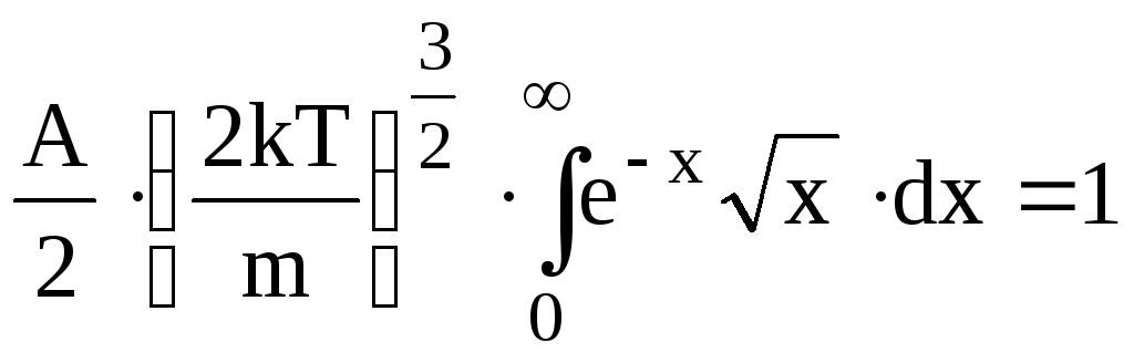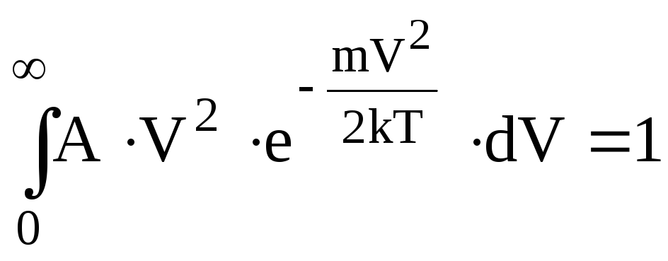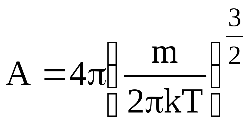Тут: А – коефіцієнт, який знайдемо із умови (6.18) нормування функції розподілу, m – маса однієї молекули, k – стала Больцмана, Т – абсолютна температура.