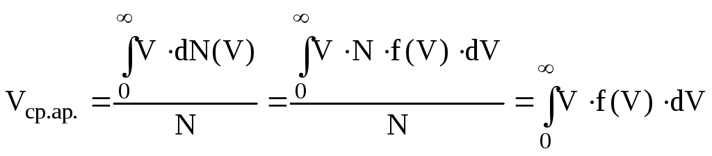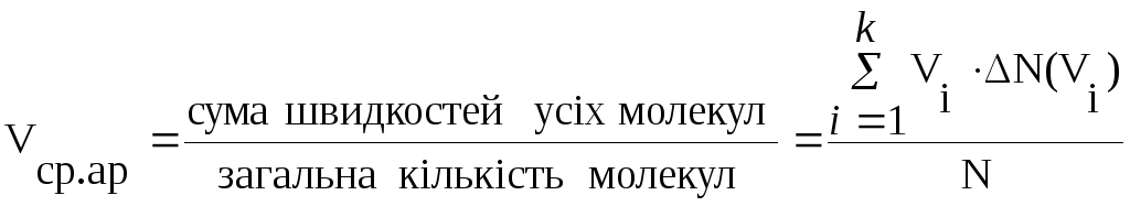 Знайдемо середню арифметичну швидкість Vср. ар. з таких міркувань: швидкість V1 мають ∆N(V1) молекул;
