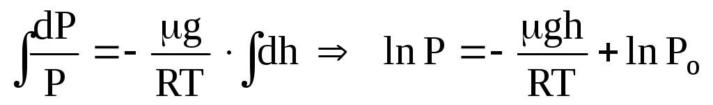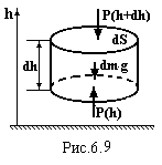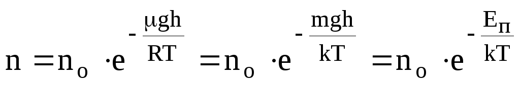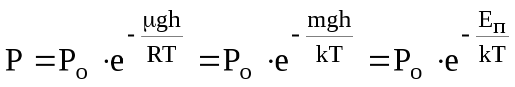 де m – маса однієї молекули, Еп – потенціальна енергія молекули в гравітаційному полі Землі. Формула (6.26) показує, що по мірі збільшення висоти тиск зменшується по експоненті.