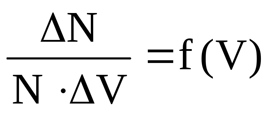 уже не залежить і від ширини інтервалу, а являється тільки функцією швидкості. Це і є функція розподілу молекул, в даному випадку по швидкостям. Вона показує ймовірність того, що значення швидкості потрапляє в інтервал від V до V+1, тобто в одиничний інтервал швидкостей. Тому її називають густиною ймовірності.