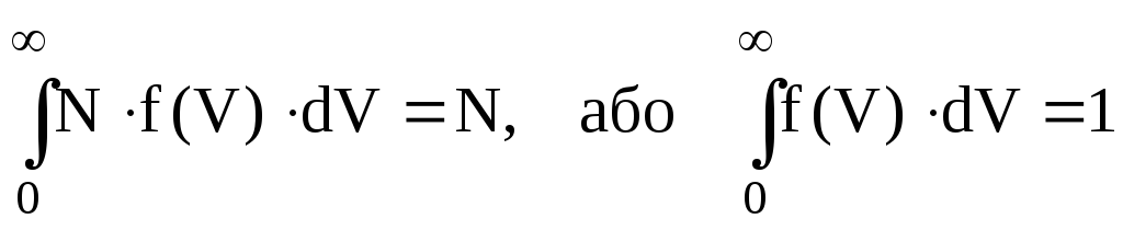 Це умова нормування функції розподілу. Останній вираз означає, що ймовірність виявити будь-яке значення швидкості, тобто в інтервалі від 0 до ∞, дорівнює 1.Це достовірна подія.