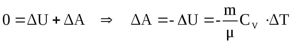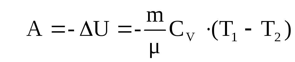 тобто робота при в теплоізольованій системі може бути виконана за рахунок зменшення, що показує знак (-) мінус, внутрішньої енергії. Отже, робота газу при адіабатному процесі