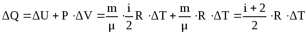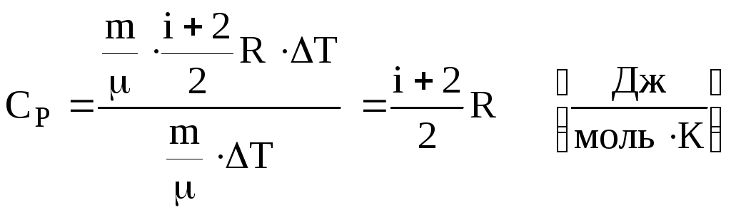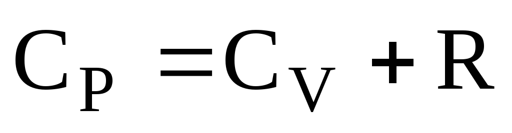 Це співвідношення Майєра. Теплоємність Ср > CV тому, що при ізобарному процесі підведене тепло іде не тільки на зміну внутрішньої енергії (як при ізохорному процесі), а і на виконання роботи. Ясно, що в цьому випадку потрібно підвести більше теплоти.