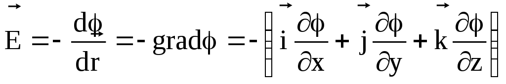 Напруженість дорівнює градієнту потенціалу з протилежним знаком
