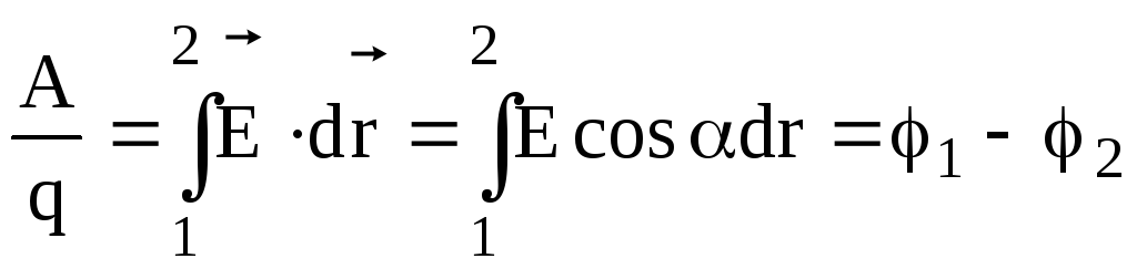 Якщо в (7.25) віднести роботу до заряду q, то воно уже не буде залежати від величини заряду, а буде визначатись тільки положенням початкової і кінцевої точок та напруженістю поля. Це дає можливість ввести нову енергетичну характеристику поля: потенціал і різницю потенціалів. Із (7.25) одержуємо