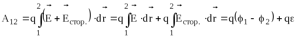називається напругою. Це робота, яку виконують сили електричного поля і сторонні сили по переміщенню одиничного позитивного заряду із точки 1 в точку 2.