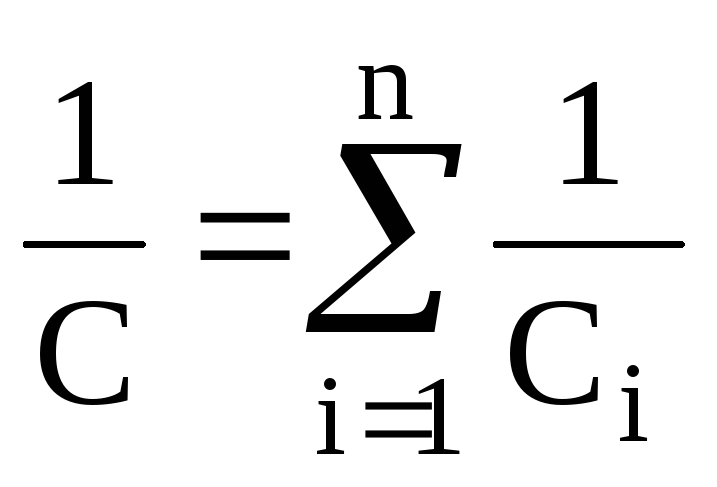 обернена електроємність батареї дорівнює сумі обернених електроємностей конденсаторів.