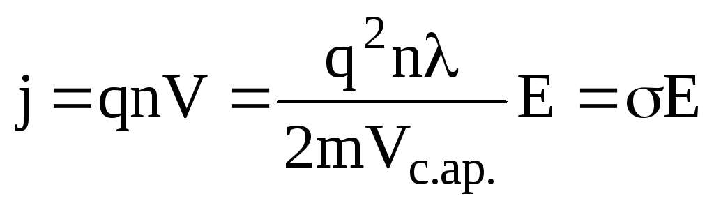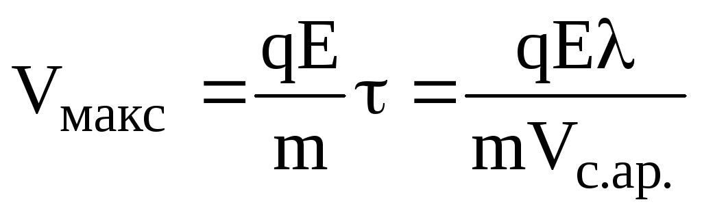 – Від зіткнення до зіткнення з атомами електрон рухається з середньою тепловою швидкістю. Зіткнення електрона з атомами носять абсолютно пружний характер, причому вважається, що електрон при цьому повністю втрачає набуту швидкість направленого руху. Отже направлений рух електрона між зіткненнями рівноприскорений без початкової швидкості направленого руху.