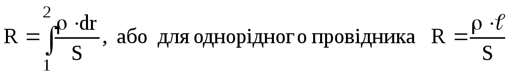 залежить від матеріалу і геометричних розмірів: площі перерізу S та довжини ℓ.