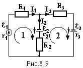 Для зображеної схеми (рис.8.9) рівняння 2-го закону Кірхгофа мають вид: