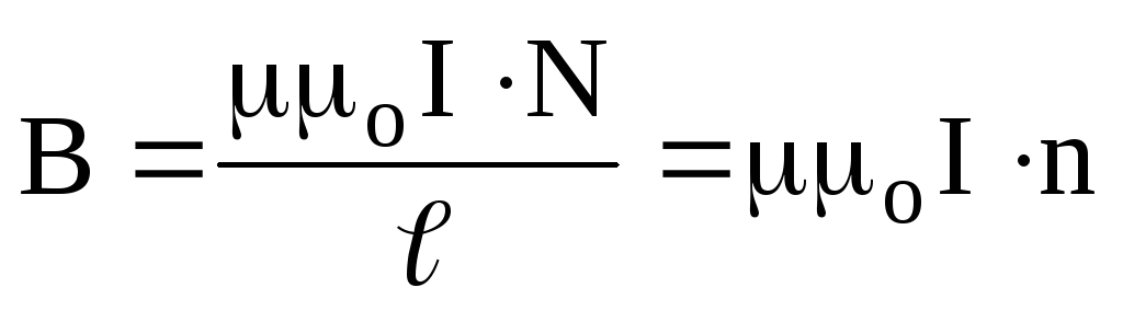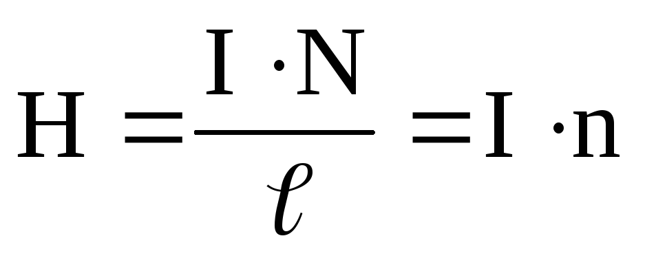 Тут n - лінійна густина намотки, тобто кількість витків на одиниці довжини соленоїда. Напруженість дорівнює кількості ампер-витків на одиниці довжини. Напрямок векторів визначається за правилом правого гвинта (див. розд.9.3).