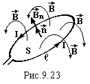 При протіканні струму по будь-якому контуру створюється магнітне поле, лінії індукції якого пронизують площу S цього ж самого контуру (рис.9.23). Магнітний потік у цьому випадку називається потоком самоіндукції