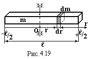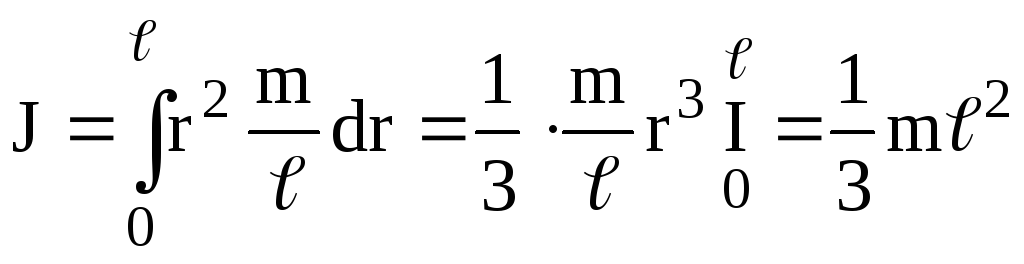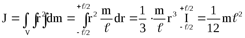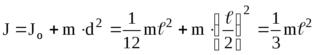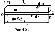 Впевнимося у справедливості цієї теореми на прикладі розрахунку моменту інерції довгого стержня відносно осі, яка перпендикулярна до стержня і проходить через його край (рис.4.21). Безпосереднє інтегрування, як і у прикладі 4) дає