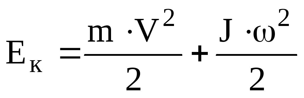 Якщо тіло не тільки обертається, а ще і його центр маси рухається поступально з швидкістю V, наприклад, котиться колесо, то кінетична енергія дорівнює сумі поступальної і обертальної складових