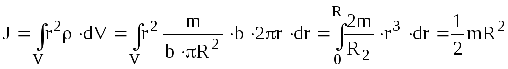 в) Момент інерції диска (циліндра) відносно осі, яка співпадає з віссю циліндра. Задана маса диска m і його радіус R (рис.4.18). Знайти J.