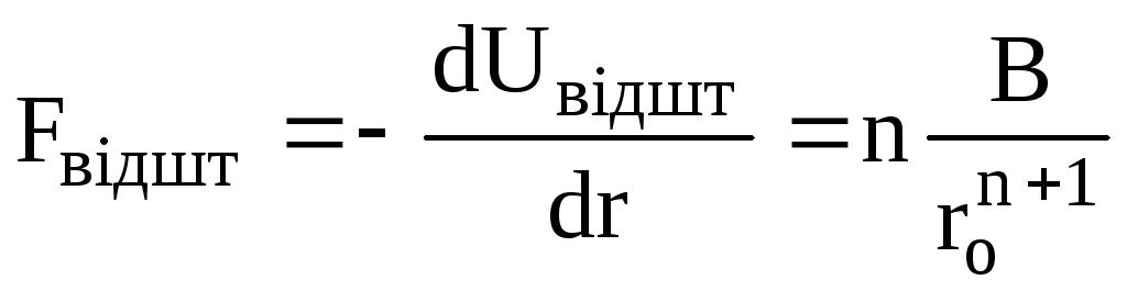 Сили відштовхування проявляються на малих відстанях і швидко зростають із зменшенням відстані. Енергія відштовхування